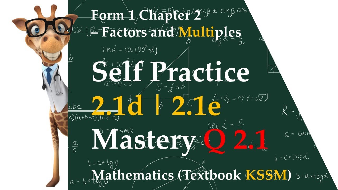 Kssm Form 1 Mathematics Chapter 2 Self Practice 2 1d Self Practice 2 1e Mastery Q 2 1 Youtube